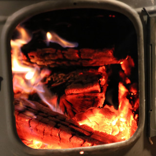 まずは、薪ストーブで火起こしをするでござる!!これ、BBQ城の基本でござる!!